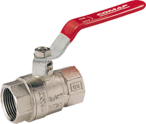 Comap kogelafsluiter recht, nom. diameter aansluiting 1 2" (50), kogel messing, behuizing messing, nom. diameter aansluiting 2 2" (50), kogelafdichting polytetrafluorethyleen (P, spindel messing, constructie huis overig, aansluiting 1 binnendraad cilindrisch B,