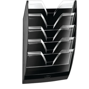 Wandsorteerrek, Materiaal: Polystyreen, Voor formaat: 210 x 297 mm (A4), Kleur: Zwart, Totale breedte: 350 mm, Totale diepte: 122 mm, Totale hoogte: 580 mm, Aantal vakken: 5, Recyclebare verpakking: Ja - 100%, Gerecyclede verpakkingen: 100 %, Recyclebaar product: Ja - 100%