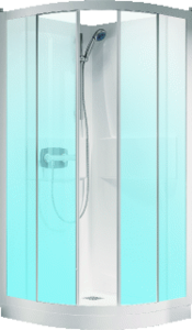 Kinedo Kineprime R douche-unit, hoogte 1990mm, douchebak kunststof, buitenmaat 1(grootste maat) 900mm, douchebak wit, toegang deur, profiel wit, cabine kunststof, profielglans glanzend, buitenmaat 2 900mm, kwartrond, geschikt voor hoekmontage, type deur schuif. 1-delig, deur(en) veiligheidsglas,