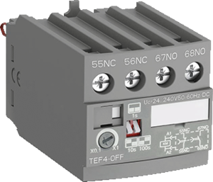 Abb AF tijdcontactblok, schakelfunctie afvalvertraagd, insteltijd 0.1 - 100s, 1 contacten als maakcontact, 1 contacten als verbreekcon, werkingsprincipe elektronisch