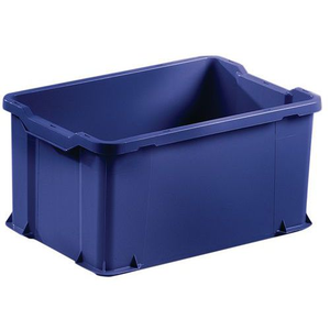 Stapelbare transportbak, Totale inhoud: 24 L, Totale hoogte: 145 mm, Totale breedte: 400 mm, Totale lengte: 600 mm, Bak kleur: Blauw, Model: 24, Inwendige lengte: 537 mm, Nuttige breedte: 358 mm, Nuttige hoogte: 140 mm, Type bodem: Gesloten, Type zijkant: Gesloten, Max. belasting: 25 kg, Max. statisch stapelvermogen: 500 kg, Materiaal: Polyethyleen van hoge dichtheid, Stapelbaar: ja, Special Covid-19: nee, Recyclebaar product: Ja - 100%, Gewicht: 1.8 kg, Min. gebruikstemperatuur: -20 °C, Max. gebruikstemperatuur: 30 °C, Gebruik voor voedsel: ja