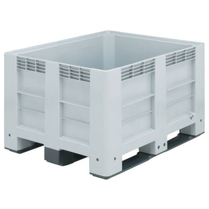 Palletkist, Totale inhoud: 600 L, Max. belasting: 500 kg, Totale hoogte: 760 mm, Totale breedte: 1000 mm, Totale lengte: 1200 mm, Gebruik voor voedsel: ja, Kleur: Grijs, Model: Dicht, Pallet basis: 3 zolen, Max. dynamisch draagvermogen: 1000 kg, Max. statisch draagvermogen: 4500 kg, Materiaal: HDPE, Nuttige hoogte: 560 mm, Nuttige breedte: 920 mm, Recyclebaar product: Ja - 100%, Gewicht: 44.7 kg, Min. gebruikstemperatuur: -20 °C, Nuttige lengte: 1120 mm