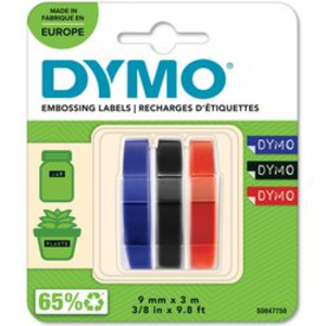Dymo Labeltape S0847750 Blauw, Zwart, Rood 9 mm x 3 M 3 Stuks