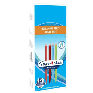 Paper mate® Non-Stop vulpotloden, 0,7 mm, HB #2, assortiment behuizing in neonkleuren . Met schokbestendige punt om het risico op breken te beperken. Dankzij het draaimechanisme hoeft u het potlood niet meer zelf te slijpen. Met de grafietstift #2 wordt het trekken van regelmatige lijnen een fluitje van een cent. Met de gum kunt u eenvoudig correcties aanbrengen.