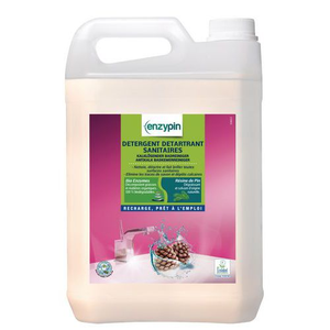 Enzypin sanitair reiniger, Ontsmettingsmiddel: nee, Verpakking: Kan, Inhoud: 5 l, Geur: Dennengeur, Special Covid-19: nee, Recyclebare verpakking: Ja - 100%, Eco-verantwoordelijke aanpak: ja, Type: Sanitairreiniger, Verpakking: Veiligheidskan, CLP - Corrosieven producten: ja