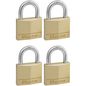 Massief messing sleutelhangslot en een geharde stalen beugel, ideaal voor het beveiligen van kasten, lockers, hekken, afrasteringen, enz. Dubbele schoenplaatvergrendeling om wrikken en hameren te voorkomen. Voor gebruik binnen of buiten.