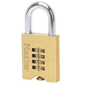 Programmeerbaar messing combinatiehangslot. Dubbele schoenplaatvergrendeling voorkomt opening door wrikken en hameren. Het hangslot heeft een programmeerbaar vergrendelingssysteem met combinatieslot waarvoor geen resetgereedschap nodig is.