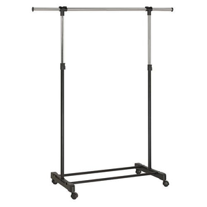 Aanpasbaar aan uw opslagbehoefte Mobiel garderoberek met telescopische stalen stang. Dwarsbalk in breedte en in hoogte verstelbaar. Licht en eenvoudig te verplaatsen dankzij de wielen. Eenvoudig te monteren en te verplaatsen.