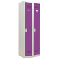 Garderobekast lichte industrie, Type garderobekast: Met vakken en garderobe, Materiaal: Staal, Aantal kastkolommen: 2, Onderstel: Op sokkel, Breedte kolom: 300 mm, Type sluiting: Met hangslot, Hoogte: 1800 mm, Breedte: 600 mm, Diepte: 500 mm, Plaatstaal dikte: 7/10de, Nuttige hoogte vak: 1685 mm, Nuttige breedte vak: 299 mm, Nuttige diepte vak: 473 mm, Kleur ombouw: Lichtgrijs, Kleur deur: Paars, Geleverd gemonteerd: ja, Garderobekast gebruiksomgeving: Lichte industrie, Gerecyclede verpakkingen: 95 %, Gerecycled product: 52 %, Eco-verantwoordelijke aanpak: ja, Aantal vakken: 2, NF Milieu: nee