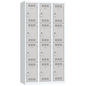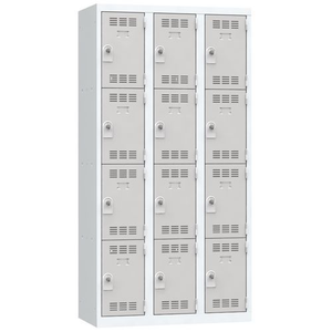 Meervaks garderobekast, Type garderobekast: Met vakken, Materiaal: Staal, Aantal vakken/kolom: 4, Aantal kastkolommen: 3, Onderstel: Op sokkel, Breedte kolom: 300 mm, Aantal kubusvakken: 12, Type sluiting: Met hangslot, Hoogte: 1800 mm, Breedte: 900 mm, Diepte: 500 mm, Plaatstaal dikte: 7/10de, Nuttige hoogte vak: 422 mm, Nuttige breedte vak: 298 mm, Nuttige diepte vak: 473 mm, Kleur ombouw: Lichtgrijs, Kleur deur: Lichtgrijs, Geleverd gemonteerd: ja, Gerecyclede verpakkingen: 95 %, Gerecycled product: 52 %, Eco-verantwoordelijke aanpak: ja, NF Milieu: nee, NF: nee