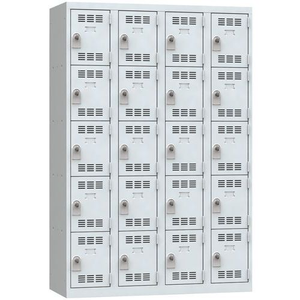 Meervaks garderobekast, Type garderobekast: Met vakken, Materiaal: Staal, Aantal vakken/kolom: 5, Aantal kastkolommen: 4, Onderstel: Op sokkel, Breedte kolom: 300 mm, Aantal kubusvakken: 20, Type sluiting: Met hangslot, Hoogte: 1800 mm, Breedte: 1200 mm, Diepte: 500 mm, Plaatstaal dikte: 7/10de, Nuttige hoogte vak: 337 mm, Nuttige breedte vak: 298 mm, Nuttige diepte vak: 473 mm, Kleur ombouw: Lichtgrijs, Kleur deur: Lichtgrijs, Geleverd gemonteerd: ja, Gerecyclede verpakkingen: 95 %, Gerecycled product: 52 %, Eco-verantwoordelijke aanpak: ja, NF Milieu: nee, NF: nee