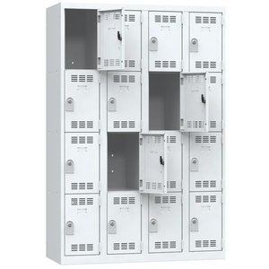 Meervaks garderobekast, Type garderobekast: Met vakken, Materiaal: Staal, Aantal vakken/kolom: 4, Aantal kastkolommen: 4, Onderstel: Op sokkel, Breedte kolom: 300 mm, Aantal kubusvakken: 16, Type sluiting: Met sleutel, Hoogte: 1800 mm, Breedte: 1200 mm, Diepte: 500 mm, Plaatstaal dikte: 7/10de, Nuttige hoogte vak: 422 mm, Nuttige breedte vak: 298 mm, Nuttige diepte vak: 473 mm, Kleur ombouw: Lichtgrijs, Kleur deur: Lichtgrijs, Geleverd gemonteerd: ja, Gerecyclede verpakkingen: 95 %, Gerecycled product: 52 %, Eco-verantwoordelijke aanpak: ja, NF Milieu: nee, NF: nee