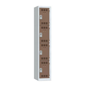 Meervaks garderobekast, Type garderobekast: Met vakken, Materiaal: Staal, Aantal vakken/kolom: 4, Aantal kastkolommen: 1, Onderstel: Op sokkel, Breedte kolom: 300 mm, Aantal kubusvakken: 4, Type sluiting: Met sleutel, Hoogte: 1800 mm, Breedte: 300 mm, Diepte: 500 mm, Plaatstaal dikte: 7/10de, Nuttige hoogte vak: 422 mm, Nuttige breedte vak: 298 mm, Nuttige diepte vak: 473 mm, Kleur ombouw: Lichtgrijs, Kleur deur: Taupe, Geleverd gemonteerd: ja, Gerecyclede verpakkingen: 95 %, Gerecycled product: 52 %, Eco-verantwoordelijke aanpak: ja, NF Milieu: nee, NF: nee