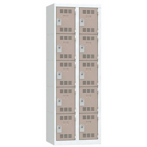 Meervaks garderobekast, Type garderobekast: Met vakken, Materiaal: Staal, Aantal vakken/kolom: 5, Aantal kastkolommen: 2, Onderstel: Op sokkel, Breedte kolom: 300 mm, Aantal kubusvakken: 10, Type sluiting: Met sleutel, Hoogte: 1800 mm, Breedte: 600 mm, Diepte: 500 mm, Plaatstaal dikte: 7/10de, Nuttige hoogte vak: 337 mm, Nuttige breedte vak: 298 mm, Nuttige diepte vak: 473 mm, Kleur ombouw: Lichtgrijs, Kleur deur: Taupe, Geleverd gemonteerd: ja, Gerecyclede verpakkingen: 95 %, Gerecycled product: 52 %, Eco-verantwoordelijke aanpak: ja, NF Milieu: nee, NF: nee