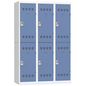 Meervaks garderobekast, Type garderobekast: Met vakken, Materiaal: Staal, Aantal vakken/kolom: 2, Aantal kastkolommen: 3, Onderstel: Op sokkel, Breedte kolom: 400 mm, Aantal kubusvakken: 6, Type sluiting: Met hangslot, Hoogte: 1800 mm, Breedte: 1200 mm, Diepte: 500 mm, Plaatstaal dikte: 7/10de, Nuttige hoogte vak: 809 mm, Nuttige breedte vak: 398 mm, Nuttige diepte vak: 473 mm, Kleur ombouw: Lichtgrijs, Kleur deur: Blauw, Geleverd gemonteerd: ja, Gerecyclede verpakkingen: 95 %, Gerecycled product: 52 %, Eco-verantwoordelijke aanpak: ja, NF Milieu: nee, NF: nee