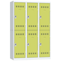 Meervaks garderobekast, Type garderobekast: Met vakken, Materiaal: Staal, Aantal vakken/kolom: 2, Aantal kastkolommen: 3, Onderstel: Op sokkel, Breedte kolom: 400 mm, Aantal kubusvakken: 6, Type sluiting: Met hangslot, Hoogte: 1800 mm, Breedte: 1200 mm, Diepte: 500 mm, Plaatstaal dikte: 7/10de, Nuttige hoogte vak: 809 mm, Nuttige breedte vak: 398 mm, Nuttige diepte vak: 473 mm, Kleur ombouw: Lichtgrijs, Kleur deur: Anijs, Geleverd gemonteerd: ja, Gerecyclede verpakkingen: 95 %, Gerecycled product: 52 %, Eco-verantwoordelijke aanpak: ja, NF Milieu: nee, NF: nee