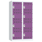 Meervaks garderobekast, Type garderobekast: Met vakken, Materiaal: Staal, Aantal vakken/kolom: 4, Aantal kastkolommen: 2, Onderstel: Op sokkel, Breedte kolom: 400 mm, Aantal kubusvakken: 8, Type sluiting: Met hangslot, Hoogte: 1800 mm, Breedte: 800 mm, Diepte: 500 mm, Plaatstaal dikte: 7/10de, Nuttige hoogte vak: 422 mm, Nuttige breedte vak: 398 mm, Nuttige diepte vak: 473 mm, Kleur ombouw: Lichtgrijs, Kleur deur: Paars, Geleverd gemonteerd: ja, Gerecyclede verpakkingen: 95 %, Gerecycled product: 52 %, Eco-verantwoordelijke aanpak: ja, NF Milieu: nee, NF: nee