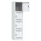 Meervaks garderobekast, Type garderobekast: Met vakken, Materiaal: Staal, Aantal vakken/kolom: 4, Aantal kastkolommen: 1, Onderstel: Op sokkel, Breedte kolom: 400 mm, Aantal kubusvakken: 4, Type sluiting: Met hangslot, Hoogte: 1800 mm, Breedte: 400 mm, Diepte: 500 mm, Plaatstaal dikte: 7/10de, Nuttige hoogte vak: 422 mm, Nuttige breedte vak: 398 mm, Nuttige diepte vak: 473 mm, Kleur ombouw: Lichtgrijs, Kleur deur: Lichtgrijs, Geleverd gemonteerd: ja, Gerecyclede verpakkingen: 95 %, Gerecycled product: 52 %, Eco-verantwoordelijke aanpak: ja, NF Milieu: nee, NF: nee