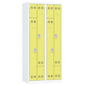 L-vormige, ruimtebesparende garderobekast 3 kolommen. Geeft elke gebruiker het voordeel van een opbergvak en een hangkast. De inhoud van de opbergruimte is zo maximaal te benutten. Let op: de modellen met hangslothouder worden geleverd zonder hangslot. Vergeet dit niet te bestellen (Ø beugel 6 mm - bxh:22x22 mm // behuizing bxhxdikte 40x39x16 mm).