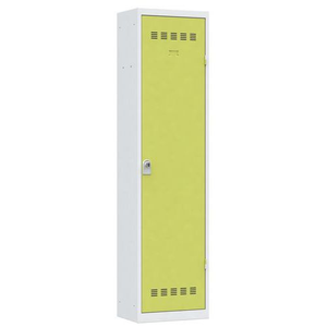 Garderobekast verschillende diensten, Type garderobekast: Met vakken en garderobe, Materiaal: Staal, Aantal kastkolommen: 1, Onderstel: Op sokkel, Breedte kolom: 500 mm, Type sluiting: Met hangslot, Hoogte: 1980 mm, Breedte: 500 mm, Diepte: 350 mm, Plaatstaal dikte: 7/10de, Nuttige hoogte vak: 1878 mm, Nuttige breedte vak: 498 mm, Nuttige diepte vak: 321 mm, Kleur ombouw: Lichtgrijs, Kleur deur: Groen, Geleverd gemonteerd: ja, Garderobekast gebruiksomgeving: Lichte industrie, Aantal vakken/kolom: 1, Gerecyclede verpakkingen: 95 %, Gerecycled product: 52 %, Eco-verantwoordelijke aanpak: ja