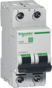 Schneider Electric installatieautomaat, inbouwdiepte 44mm, uitschakelkarakteristiek C, 2 polen (totaal), 2 beveiligde polen, nom. (meet)stroom 10A, nom. (meet)spanning 415V, spanningstype AC/DC, nom. isolatiespanning Ui 500V, nom. stoothoudspanning (Uimp) 6kV,