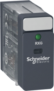 Schneider Electric Harmony RXG schakelrelais, (bxhxd) 13x34.5x28.8mm, type schakelcontact 1-voudig contact, nom. stuurspanning bij DC 24V, uitvoering elektrische aansluiting vlaksteekaansluiting, 2 contacten als wisselconta, nom. stroom 5A, schakelverhouding van de aandrijvin monostabiel,