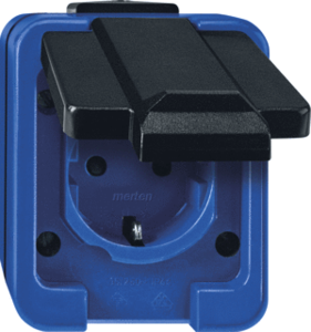 Schneider Electric M SLAGVAST SCHUKO wandcontactdoos (wcd schakelmat.), blauw, uitvoering contactdoos CEE 7/3 (type, 2 actieve contacten (rond), 1 eenheid, 1 fasen, aansluitwijze schroefklem, met klapdeksel, met verhoogde aanraakbeveiliging, RAL-nummer 5002