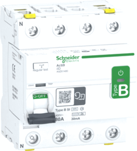 Schneider Electric aardlekschakelaar, 4 polen, type lekstroom B, DIN-rail, nom. (meet)stroom 80A, nom. foutstroom 0.03A, aansluitbare geleiderdoorsnede eend 1 - 35mm², nevenapparaat mogelijk, frequentie 50Hz, beschermingsgraad (IP) IP20, aansluitbare geleiderdoorsnede meer 1 - 25mm²,