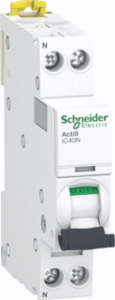 Schneider Electric Acti 9 IC40 installatieautomaat, inbouwdiepte 44mm, uitschakelkarakteristiek C, 2 polen (totaal), 1 beveiligde polen, nom. (meet)stroom 4A, nom. (meet)spanning 230V, spanningstype AC, nom. isolatiespanning Ui 400V, nom. stoothoudspanning (Uimp) 4kV,