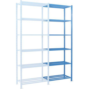 Stelling Combi-Plus, Max. belasting per legbord: 500 kg, Hoogte: 2500 mm, Aantal legborden: 6, Type legbord: Buislegbord, Breedte: 1010 mm, Diepte: 400 mm, Coating: Epoxy, Type element: Aanbouw, Legbord materiaal: Staal, Aantal niveaus: 6, Kleur staander: Blauw, Kleur ligger: Blauw, Legbord kleur: Blauw, RAL: 5015, Stelling voor: Volumineuze producten, Configureerbaar: ja, Stelling lijn: Combi-Plus, Afstand verstelbaarheid: 62.5 mm, Max. belasting: 2500 kg, Montage: Zelfbouw, Nuttige breedte: 930 mm, Gerecyclede verpakkingen: 90 %, Recyclebaar product: Ja - 100%, Gerecycled product: 85 %, Eco-verantwoordelijke aanpak: ja, Frame materiaal: Staal, Montagesysteem: Met haakjes, Staander breedte: 50 mm, Staander diepte: 30 mm, Aantal staanders: 2, Type stelling: Halfzware stelling, Geen gereedschap nodig: ja, Dekra: ja