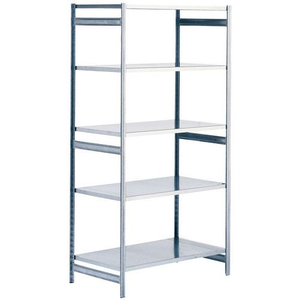 Gesloten stelling van plaatstaal Multi-Fix Galva, Max. belasting per legbord: 122 kg, Hoogte: 2000 mm, Aantal legborden: 5, Type legbord: Dicht, Breedte: 1000 mm, Diepte: 600 mm, Coating: Gegalvaniseerd, Type element: Basis, Legbord materiaal: Staal, Configureerbaar: ja, Stelling lijn: Multi-Fix Galva, Montage: Zelfbouw, Gerecyclede verpakkingen: 90 %, Recyclebaar product: Ja - 100%, Gerecycled product: 85 %, Eco-verantwoordelijke aanpak: ja, Frame materiaal: Staal, Type juk: Open