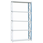 Stelling Epsivol HD, Legbord materiaal: Staal, Hoogte: 3000 mm, Aantal niveaus: 5, Aantal legborden: 5, Type legbord: Massief, Breedte: 3000 mm, Diepte: 1000 mm, Coating: Epoxy, Type element: Aanbouw, Max. belasting per niveau: 630 kg, Kleur juk: Blauw, Kleur ligger: Lichtgrijs, Legbord kleur: Gegalvaniseerd, RAL: 5015 7035, Stelling voor: Volumineuze producten, Configureerbaar: ja, Stelling lijn: Epsivol HD, Max. belasting: 4500 kg, Montage: Zelfbouw, Ligger materiaal: Staal, Gerecyclede verpakkingen: 90 %, Recyclebaar product: Ja - 100%, Gerecycled product: 85 %, Eco-verantwoordelijke aanpak: ja, Frame materiaal: Staal, Ligger breedte: 3000 mm, Ligger diepte: 36 mm, Ligger hoogte: 107 mm, Aantal jukken: 1, Dikte legbord: 19 mm, Type stelling: Zwaarlast stelling, Dekra: ja