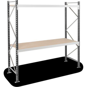 Stelling Epsivol voor middelzwaar lasten, lange afstanden, Legbord materiaal: Spaanplaat, Hoogte: 2000 mm, Aantal niveaus: 2, Aantal legborden: 2, Type legbord: Dicht, Breedte: 2700 mm, Diepte: 800 mm, Coating: Gegalvaniseerd, Type element: Basis, Kleur juk: Donkergrijs, Kleur staander: Lichtgrijs, Kleur ligger: Lichtgrijs, Legbord kleur: Donkergrijs, RAL: 7024 7035, Stelling voor: Volumineuze producten, Configureerbaar: ja, Stelling lijn: Epsivol, Afstand verstelbaarheid: 50 mm, Max. belasting: 3000 kg, Montage: Zelfbouw, Staaldikte staander: 1.5 mm, Frame materiaal: Staal, Montagesysteem: Hakensysteem, Ligger diepte: 36 mm, Ligger hoogte: 85 mm, Staander breedte: 50 mm, Aantal jukken: 2, Dikte legbord: 19 mm, Type stelling: Halfzware stelling, Staaldikte ligger: 1.5 mm, Dekra: ja