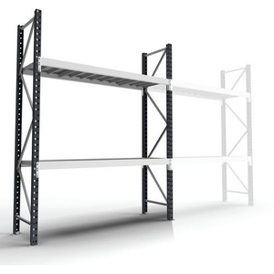 Stelling Epsivol voor middelzwaar lasten, lange afstanden, Legbord materiaal: Staal, Hoogte: 2000 mm, Aantal niveaus: 2, Aantal legborden: 2, Type legbord: Dicht, Breedte: 2700 mm, Diepte: 1000 mm, Coating: Gegalvaniseerd, Type element: Basis, Kleur juk: Donkergrijs, Kleur staander: Lichtgrijs, Kleur ligger: Lichtgrijs, Legbord kleur: Donkergrijs, RAL: 7024 7035, Stelling voor: Volumineuze producten, Configureerbaar: ja, Stelling lijn: Epsivol, Afstand verstelbaarheid: 50 mm, Max. belasting: 3000 kg, Montage: Zelfbouw, Staaldikte staander: 1.5 mm, Frame materiaal: Staal, Montagesysteem: Hakensysteem, Staander breedte: 50 mm, Aantal jukken: 2, Type stelling: Halfzware stelling, Staaldikte ligger: 1.5 mm, Dekra: ja