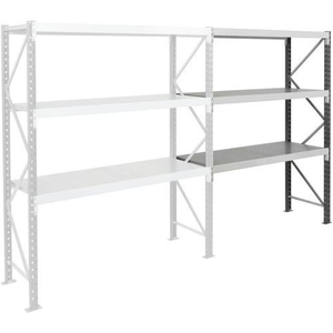 Stelling Epsivol voor middelzwaar lasten, lange afstanden, Legbord materiaal: Staal, Hoogte: 2500 mm, Aantal niveaus: 3, Aantal legborden: 3, Type legbord: Dicht, Breedte: 2700 mm, Diepte: 1000 mm, Coating: Gegalvaniseerd, Type element: Aanbouw, Kleur juk: Donkergrijs, Kleur staander: Lichtgrijs, Kleur ligger: Lichtgrijs, Legbord kleur: Donkergrijs, RAL: 7024 7035, Stelling voor: Volumineuze producten, Configureerbaar: ja, Stelling lijn: Epsivol, Afstand verstelbaarheid: 50 mm, Max. belasting: 3000 kg, Montage: Zelfbouw, Staaldikte staander: 1.5 mm, Frame materiaal: Staal, Montagesysteem: Hakensysteem, Staander breedte: 50 mm, Aantal jukken: 1, Type stelling: Halfzware stelling, Staaldikte ligger: 1.5 mm, Dekra: ja