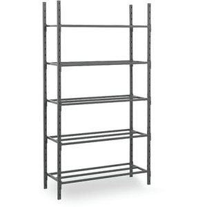 Stelling Quick'Tube voor lichte lasten, Max. belasting per legbord: 104 kg, Hoogte: 2000 mm, Aantal legborden: 5, Type legbord: Buislegbord, Breedte: 1250 mm, Diepte: 366 mm, Coating: Epoxy, Type element: Basis, Legbord materiaal: Staal, Aantal verdiepingen: 5, Frame materiaal: Staal, Kleur staander: Donkergrijs, Legbord kleur: Lichtgrijs, RAL: 7024, Stelling voor: Losse onderdelen, Staaldikte: 1.5 mm, Configureerbaar: ja, Afstand verstelbaarheid: 62.5 mm, Max. belasting: 104 kg, Materiaal: Staal, Gewicht: 21.84 kg, Juk geleverd gemonteerd: nee, Staander breedte: 20 mm, Afstand: 62.5 mm, Aantal staanders: 4, Type stelling: Stellingen voor archiefruimte, Geen gereedschap nodig: ja
