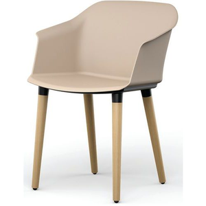 Multifunctioneel stoel Scott met houten poten, Met armleggers: ja, Type onderstel: 4 poten, Type stoel: Fauteuil, Stapelbaar: nee, Kleur: Taupe, Geleverd gemonteerd: nee, Materiaal armleuning: Polypropyleen, Zitting materiaal: Polypropyleen, Rugleuning materiaal: Polypropyleen, Montage: Zelfbouw, Armleuning instellen: Vast