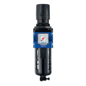Regelfilter met manometer en bevestiging. Behuizing van aluminium, tank van polycarbonaat, metalen bescherming. Maximale werkdruk: 12 bar. Uitgerust met een manometer: 0 tot 10 bar. Moet handmatig worden ontlucht.