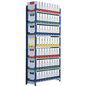 Buisrek voor archiefdozen, Max. belasting per legbord: 180 kg, Hoogte: 2000 mm, Aantal legborden: 5, Type legbord: Buislegbord, Breedte: 1000 mm, Diepte: 680 mm, Coating: Epoxy, Type element: Aanbouw, Type juk: Open, Frame materiaal: Staal, Legbord materiaal: Staal, Kleur juk: Blauw, Kleur staander: Blauw, Legbord kleur: Lichtgrijs, Stelling voor: Archiefdozen, Afstand verstelbaarheid: 50 mm, Geleverd gemonteerd: nee, Montage: Zelfbouw, Aantal staanders: 2, Dikte legbord: 80 mm, Type stelling: Lichte stelling