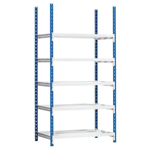 Rek Rang'Eco+, Max. belasting per legbord: 300 kg, Hoogte: 2000 mm, Aantal legborden: 3, Type legbord: Buislegbord, Breedte: 1500 mm, Diepte: 800 mm, Coating: Epoxy, Type element: Basis, Legbord materiaal: Staal, Kleur juk: Blauw, Legbord kleur: Lichtgrijs, Montage: Zelfbouw, Aantal niveaus: 3, Aantal jukken: 2, Afstand: 50 mm, Geen gereedschap nodig: ja