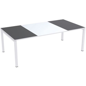 Vergadertafel Easydesk, Type onderstel: 4 poten, Hoogte: 75 cm, Breedte: 114 cm, Vorm: Rechthoek, Tafelblad materiaal: Gemelamineerd, Tafelblad kleur: Wit/grijs, Vermogen (aantal personen): 8, Onderstel kleur: Wit, Rand materiaal: Pvc, Montage: Zelfbouw, Selectie telewerken: nee, Recyclebare verpakking: Ja - 100%, Recyclebaar product: Ja - 100%, Onderstel Ø: 50 mm, Onderstel materiaal: Staal, Dikte tafelblad: 25 mm