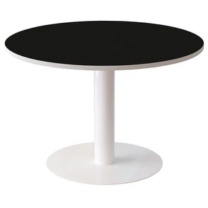 Vergadertafel, Type onderstel: Centrale, Hoogte: 75 cm, Breedte: 115 cm, Vorm: Rond, Tafelblad materiaal: Gemelamineerd, Tafelblad kleur: Zwart, Vermogen (aantal personen): 3, Onderstel kleur: Wit, Rand materiaal: ABS, Totale breedte: 115 cm, Selectie telewerken: nee, Recyclebare verpakking: Ja - 100%, Recyclebaar product: Ja - 100%, Onderstel materiaal: Metaal, Type: Vaste vergadertafel, Dikte tafelblad: 25 mm