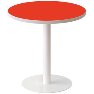 Poottafel Easy, Type onderstel: Centrale, Breedte: 60 cm, Vorm: Rond, Tafelblad kleur: Rood, Hoogte: 60 cm, Onderstel kleur: Wit, Randen materiaal: ABS, Recyclebare verpakking: Ja - 100%, Recyclebaar product: Ja - 100%, Onderstel materiaal: Staal, Dikte tafelblad: 25 mm, Tafelblad materiaal: Gemelamineerd