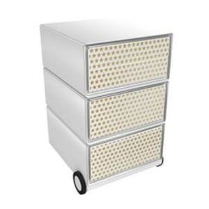 Paperflow mobiel ladeblok Hollywood. Montage: Vereist. Ontwerp: met wielen. Deuren: niet van toepassing. Laden: inclusief. Uitbreidbaar: nee. Brandvertragend: nee. Formaat: A4. Kleur van het frame: wit. In hoogte verstelbaar: nee. Inbegrepen in de levering: 1 x mobiel ladeblok. Installatieservice: nee. Vergrendelbaar: nee. Vergrendelingsmechanisme: niet afsluitbaar. Materiaal: ABS, polystyreen. Aantal wielen: 4 wielen. Aantal lades: 4 lades. Productlijn: Easybox. Zelfmontage: ja. Planken: niet van toepassing. Soort voeten: basispaneel. Gewicht: 18000 g. Afmetingen: 642 x 390 x 436 mm (h x b x d). Kleur: goud, wit.