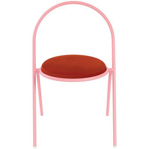 Stoel met platte rol van imitatieleer Saturne, Met armleggers: nee, Type onderstel: 4 poten, Stapelbaar: ja, Kleur: Roze, Onderstel materiaal: Staal, Frame kleur: Roze, Zithoogte: 46.5 cm, Aantal stuks: 2, Geleverd gemonteerd: nee, Zitting materiaal: Imitatieleer, Hoogte: 82 cm, Breedte: 52 cm, Diepte: 54 cm, Dikte zitting: 12 mm, Zitting kleur: Roest, Onderstel kleur: Roze