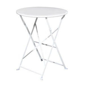 Buitentafel Eden, Lengte: 60 cm, Diepte: 60 cm, Tafelblad materiaal: Staal, Onderstel kleur: Wit, Tafelblad kleur: Wit, Lengte plateau: 60 cm, Tafelblad breedte: 60 cm, Vermogen (aantal personen): 2, Hoogte: 73 cm, Type onderstel: Kruispaneel, Aantal plaatsen: 2, Gekleurde randen: Wit, Dégagement latéral: nee, Geleverd gemonteerd: nee, Montage: Zelfbouw, Gebruiksfrequentie: Occasionele, Selectie telewerken: nee, Recyclebare verpakking: Ja - 100%, Recyclebaar product: Ja - 100%, Gebruik: Meubelindustrie, Max. hoogte: 73 cm, Min. verstelbare hoogte: 0 cm, Vorm: Rond