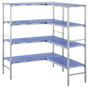 Stellingkast met 4 niveaus diepte 400 mm Tournus Apparatuur, Max. belasting per legbord: 120 kg, Hoogte: 1750 mm, Aantal legborden: 4, Type legbord: Opengewerkt, Breedte: 2995 mm, Diepte: 400 mm, Type element: Hoek, Kleur juk: Zilver/verzinkt, Kleur staander: Zilver/verzinkt, Kleur ligger: Zilver/verzinkt, Legbord kleur: Blauw, Legbord materiaal: Polyethyleen, Montage: Zelfbouw, NF Voedselhygiëne: nee, Aantal staanders: 2, Type stelling: Voedingstelling, HACCP: ja, Koudebestendig: ja, Geen gereedschap nodig: ja, Gebruik voor voedsel: ja