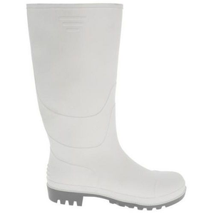 Werklaars van PVC OB SRC, Veiligheidsuiteinde: Geen, Hengel model: Hoog, Schoenmaat: 42, Kleur: Wit/grijs, Stang materiaal: PVC, Voering materiaal: Viscose, Materiaal: PVC, Geslacht: Unisex