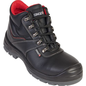 BOUW S3 SRC Veiligheidsschoen hoog.  Schacht: hoog, waterafstotend volnerf leder.  Voering: stof. Tong: opgevulde comfortabele tong, met balg. Top: composiet veiligheidsneus, 200J. Binnenzool: antistatische geperforeerde binnenzool uit EVA. Anti-perforatie tussenzool: stof met hoge sterktegraad. Zool: geïnjecteerd met polyurethaan, dubbele densiteit. Bevestigingswijze: veters en metalen haken.  Kleur: zwart, stiksels in grijs en rood.