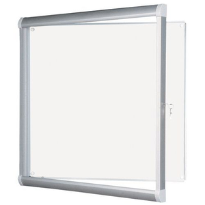 Binnenvitrine met frame van natuurlijk geanodiseerd aluminium voor een moderne uitstraling. Handig: de metalen achterwand is magnetisch, zodat u documenten met magneten kunt plaatsen of kunt schrijven en dit vervolgens kunt uitwissen. Handige en vergrendelbare draaideur voor maximale veiligheid met de mogelijkheid om de opening naar rechts of links te monteren. Toon uw gegevens veilig dankzij de deur van veiligheidsglas.